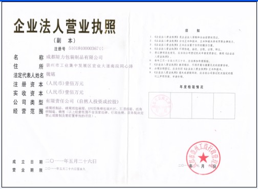 成都矩力包装制品有限公司    联系人: 郭礼     经营地址: 中国四川省成都崇州经济开发区同心路