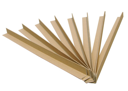 纸护角外形与角铁相似,由几张纱管纸和一张牛皮纸叠加粘合压制后,由护角机成型而成。体积小、支撑力大、广泛用箱体支撑和货物边角保护。用于解决因货物过重、货物叠压过多造成纸箱压塌和变形。用纸护角放置在箱内、处四周可有效的解决这一问题。